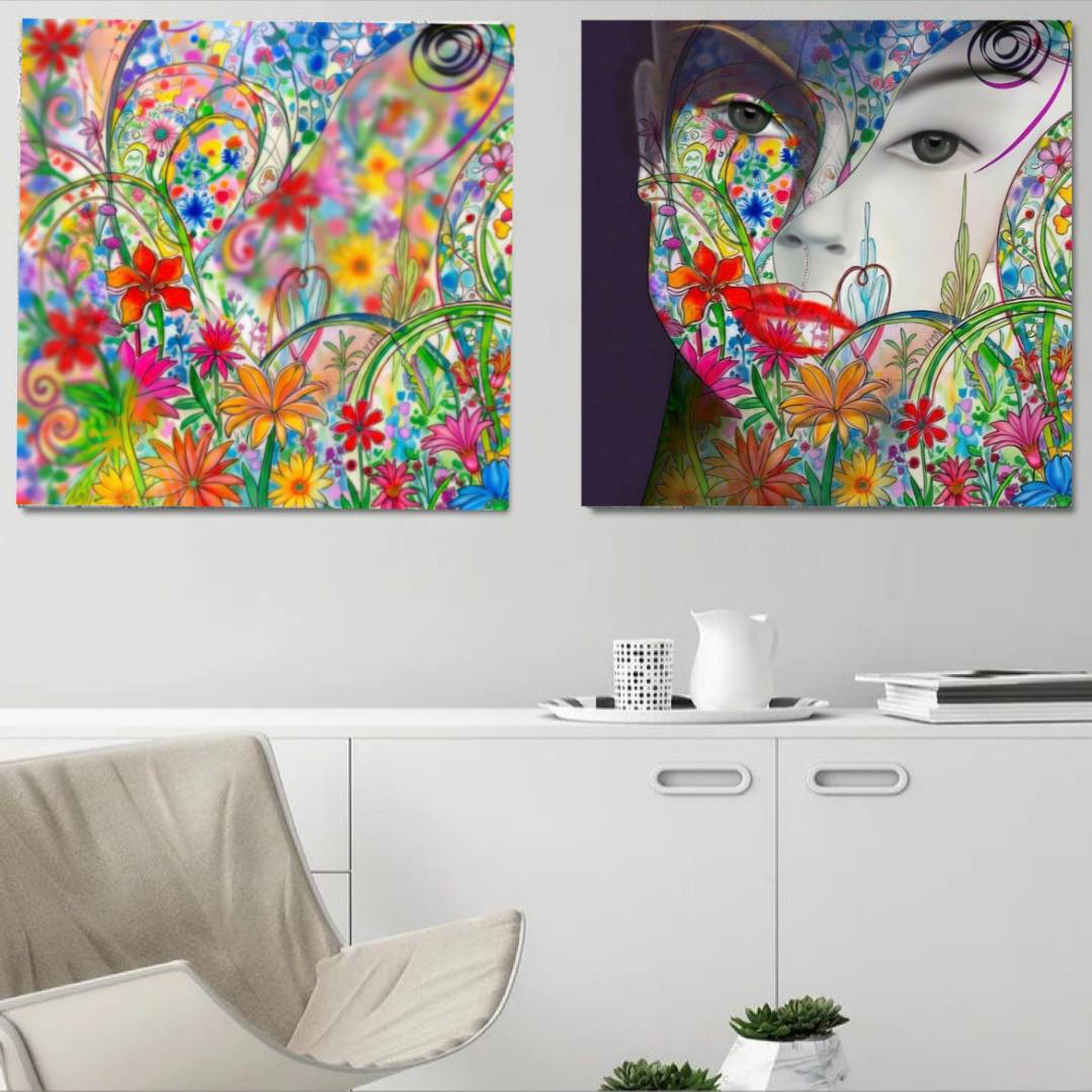 Во второй картине энергия природы обретает человеческое лицо. Цветы и линии интегрированы в черты лица, создавая образ, в котором природа и человек сливаются.