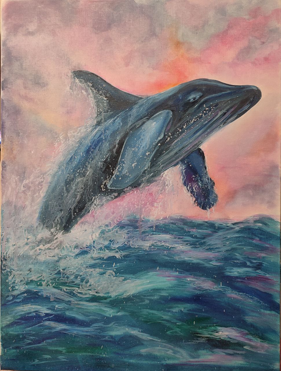 Уникальное произведение искусства – картина "Кит — Король Океана" от московской художницы Гульнары Смирновой. Создано масляными красками на холсте (размер 80x60 см). Идеально впишется в любой дизайн интерьера и станет его ярким акцентом! Купите сейчас и добавьте стильную деталь в ваше пространство!
