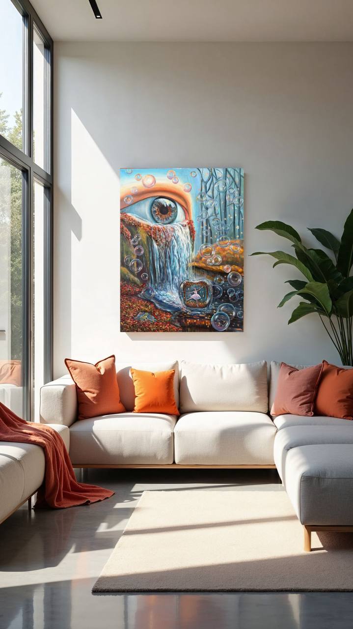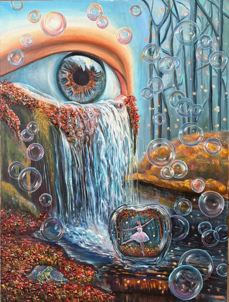 Картина задумана в пару к картине «Волшебный сад», и оттуда же взят сюжет дальнего плана — Глаз бога с водопадом и танцующая балерина. Добавлены некоторые детали: воздушные пузыри, лягушка, желтое пятно кустов на заднем плане, эффект боке.