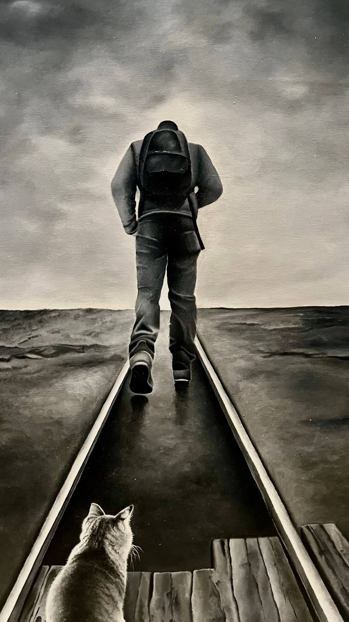 Картина символизирует путь человека в бесконечную даль, которую мы называем Жизненный Путь. Позади Пути всегда приходится оставлять кого-то или что-то важное. И здесь важным становится кот Васька, символизирующий одновременно свободу духа и домашний очаг. Не взирая на свой все вольный характер, кот Васька навсегда останется ждать хозяина на пороге его Жизненного Пути.